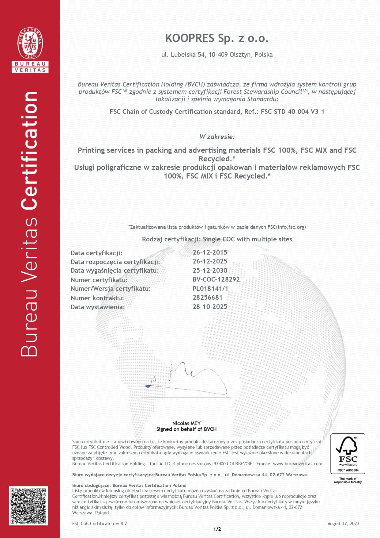 Certyfikaty FSC® oraz PEFC
