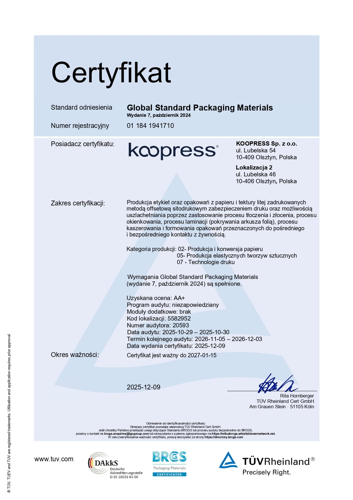 Certyfikat BRCGS